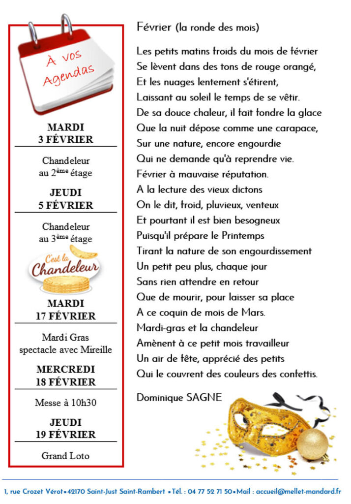 Actualités Les canards du Bords de Loire – janvier 2026 6 février 2026 by Mellet Mandard in Actualités Voici la gazette pour suivre l’actualité de l’Ehpad ! Téléchargez la gazette du mois de janvier 2026