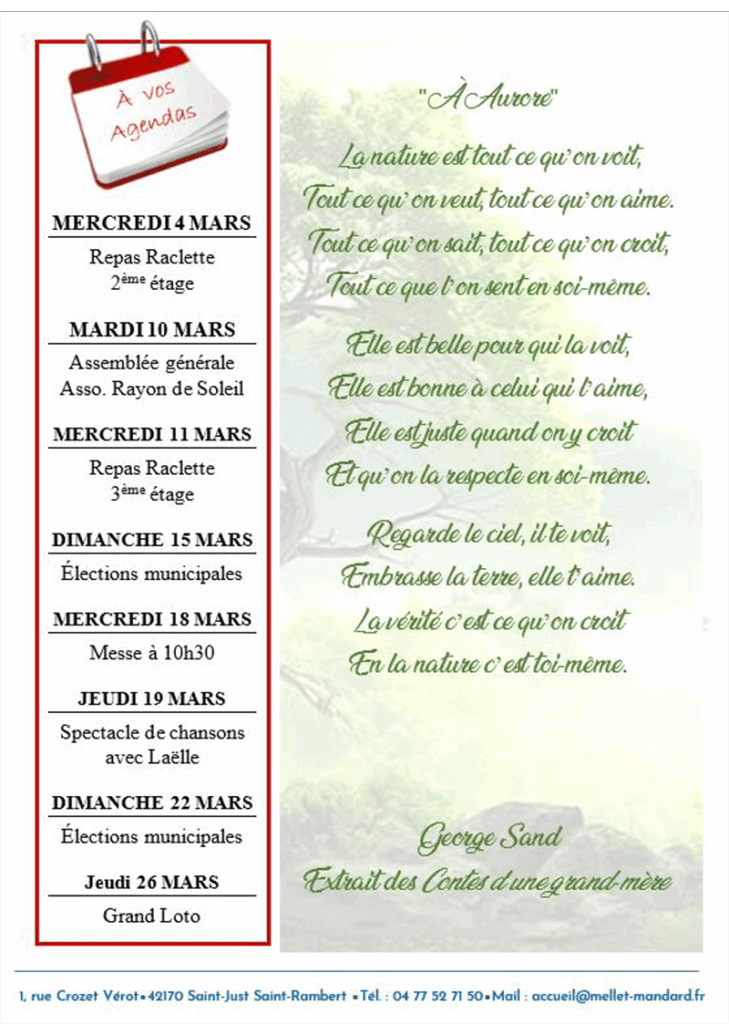 Actualités Les canards du Bords de Loire – fevrier 2026 2 mars 2026 by Mellet Mandard in Actualités Voici la gazette pour suivre l’actualité de l’Ehpad ! Téléchargez la gazette du mois de février 2026